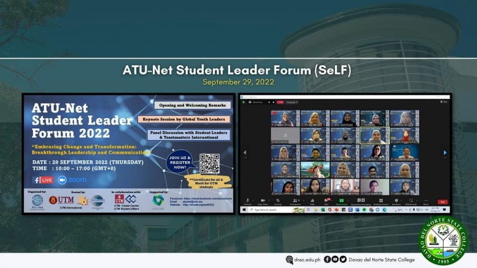 PANABO CITY – The Asia Technological University Network, a strategic international alliance between institutions of higher learning in Asia and is chaired by the Universiti Teknologi Malaysia (UTM), organized the ATU-Net Student Leader Forum (SeLF) 2022. The theme for this year’s forum was, “Embracing Change and Transformation: Breakthrough Leadership and Communication”. Davao del Norte State […]