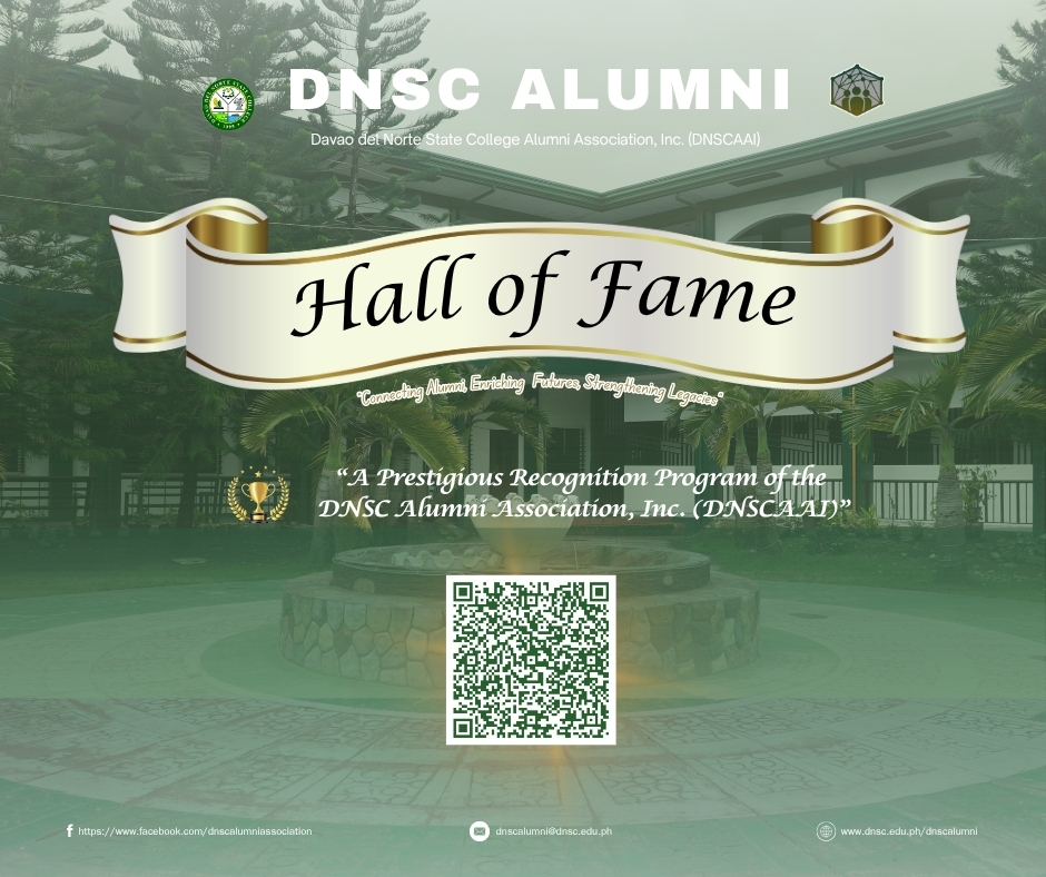 The Davao del Norte State College Alumni Association, Inc. proudly launches the DNSC Alumni Hall of Fame 2025, a distinguished recognition program honoring outstanding alumni whose remarkable achievements embody the values of the College and inspire lasting impact in their profession, community, and service to DNSC. Purpose Nomination Guidelines Who May Nominate Nomination Requirements Deadline […]