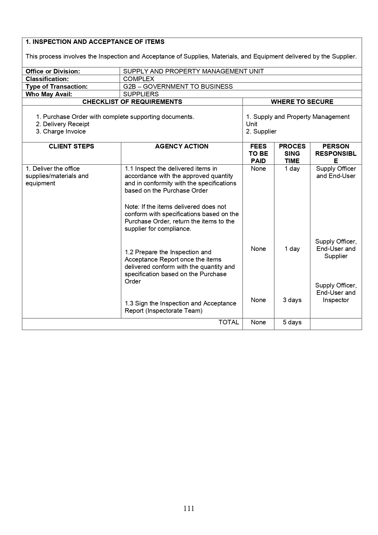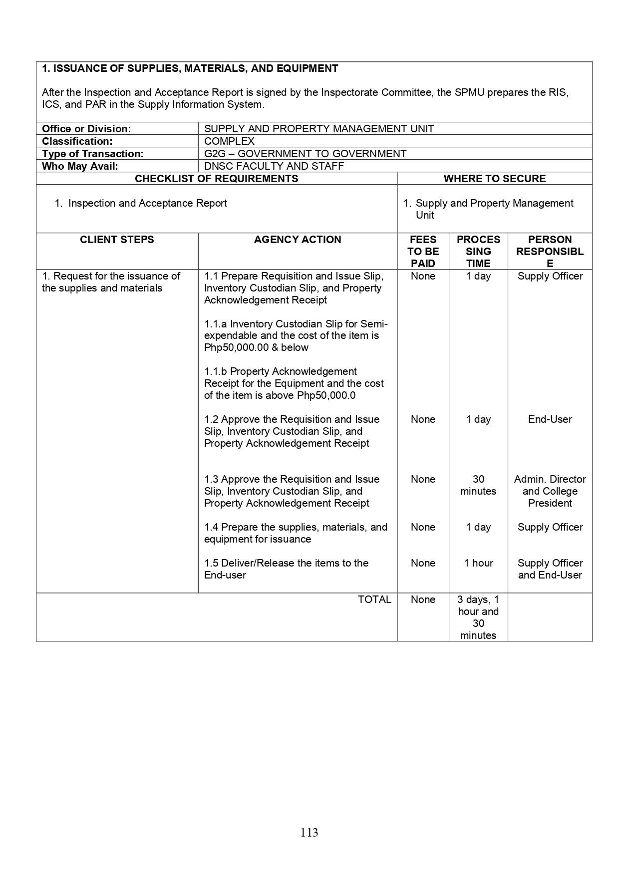 Supply and Property Management Unit Citizen’s Charter