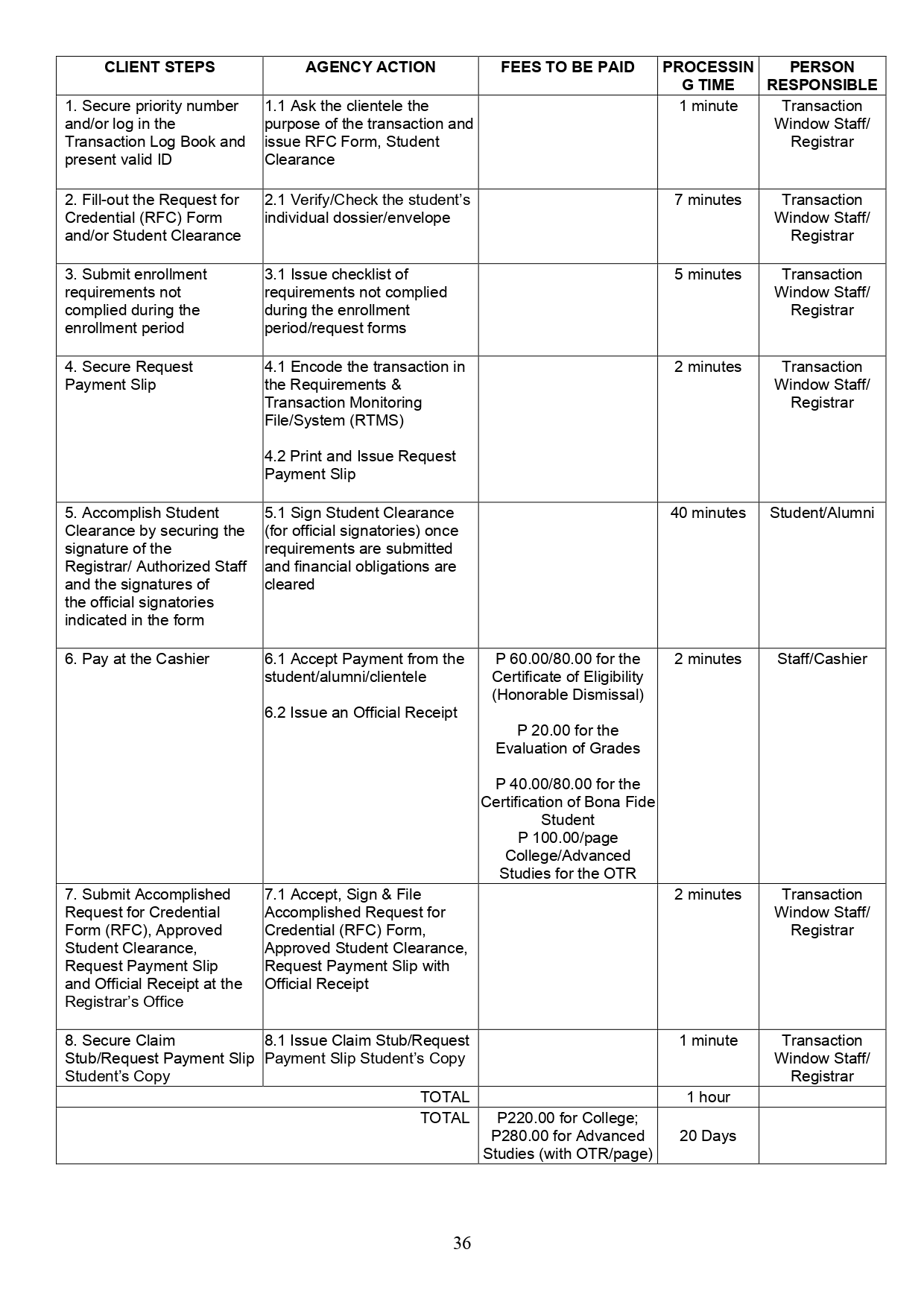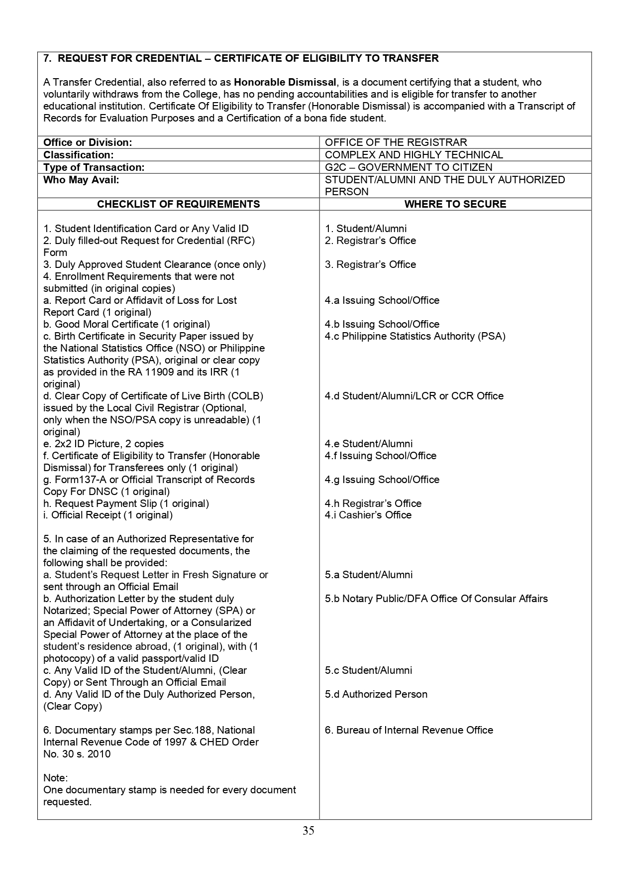 Process name: Request for Credential – Certificate of Eligibility to Transfer (Honorable Dismissal)