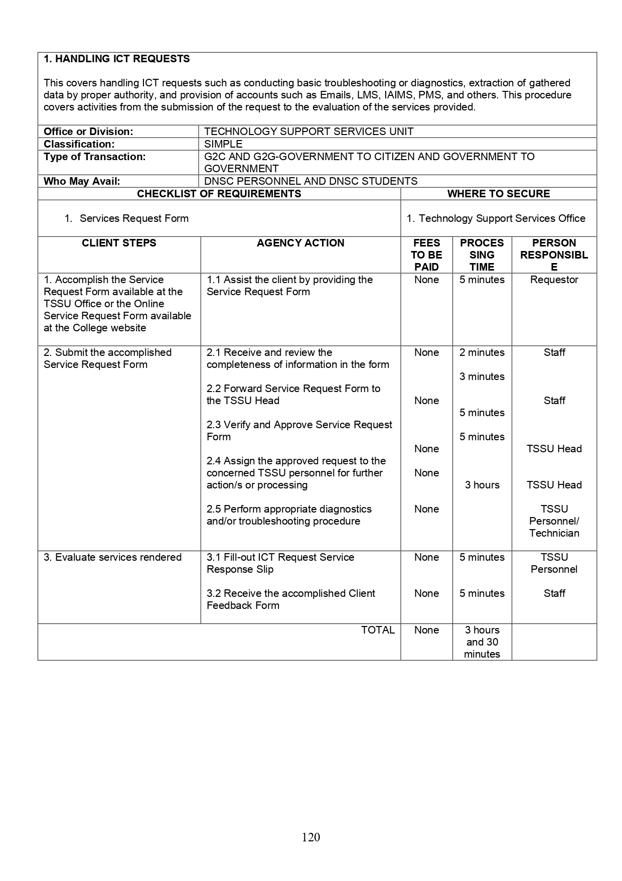 Technology Support Services Unit Citizen’s Charter