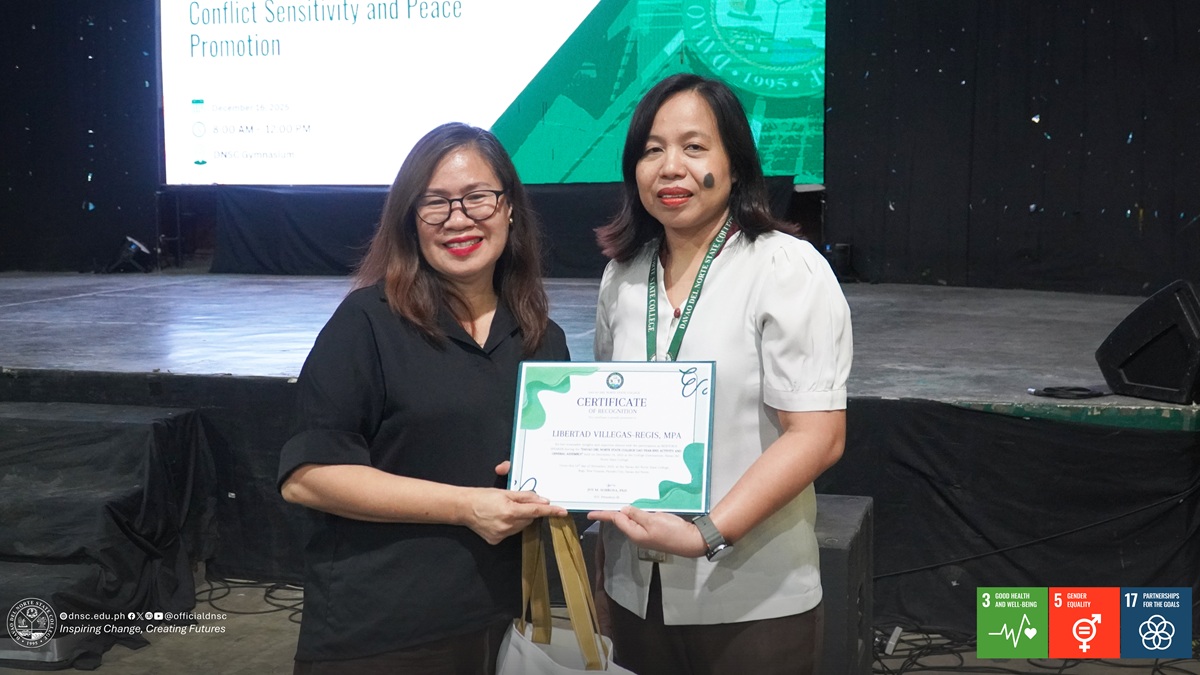 PANABO CITY – Davao del Norte State College (DNSC) capped its yearend activities with the conduct of Gender and Development (GAD) Talks: Conflict Sensitivity and Peace Promotion and HIV Awareness on December 16, 2025, at the DNSC Gymnasium.