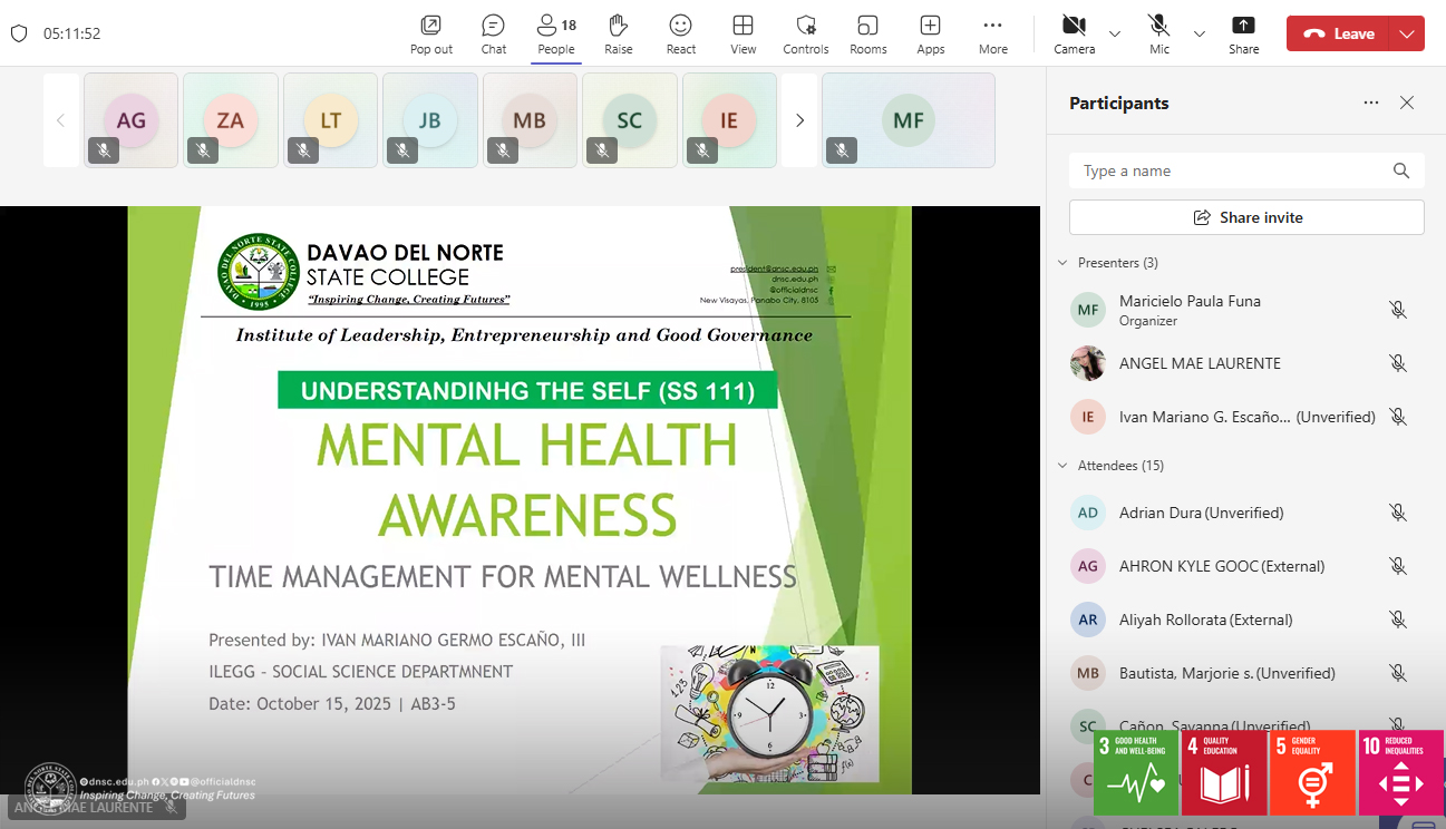 Organized by the Guidance, Counselling, and Testing Services (GCTS) under the Office of the Student Development and Services, in collaboration with the Institute of Leadership, Entrepreneurship, and Good Governance (ILEGG) and the Gender and Development (GAD) Office, the event gathered students enrolled in the Understanding the Self course along with other interested participants.
