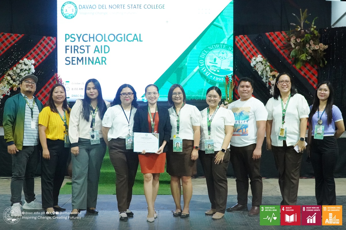 Organized by the DNSC Guidance Office and the Human Resource Management Office (HRMO), the activity gathered faculty members and selected staff for a session on providing psychological support in times of crisis. The event featured Ms. Ester Generale-Saragena, MAPCP, Instructor I and Mental Health Associate, as the resource person, who discussed the guidelines of Psychological First Aid, and facilitated simulation activities on how to conduct PFA following an earthquake.