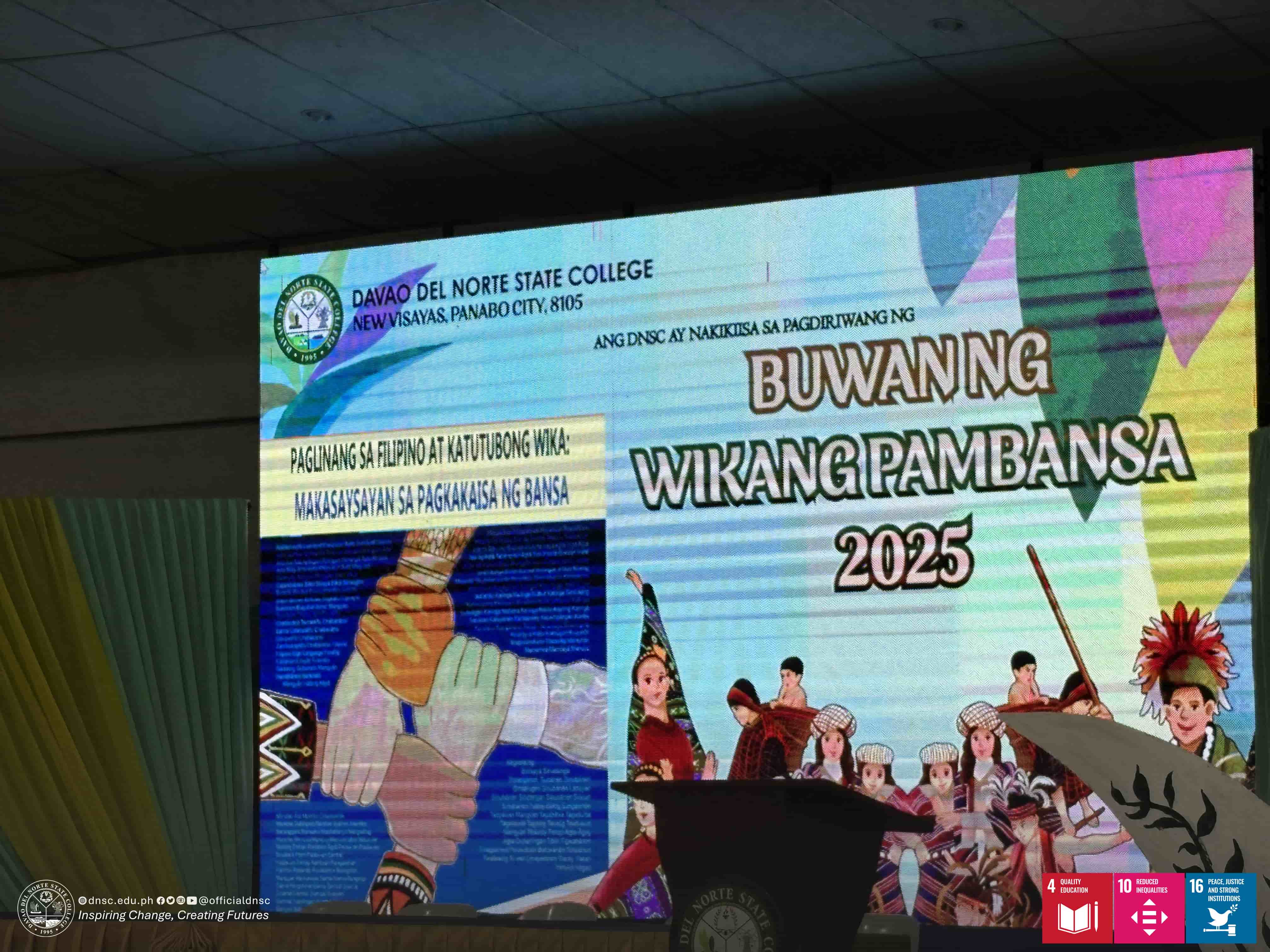 Kasunod nito, ang Davao del Norte State College, sa pangunguna ng mga guro sa Filipino mula sa Institute of Teacher Education, ay nagsagawa ng maikling panuntunan noong Agosto 26. “Ang Filipino at ating mga katutubong wika ay hindi lamang kasangkapan sa pakikipag-usap, kundi haligi rin ng ating kasaysayan, kultura, at pagkakaisa,” ani G. Reymart Mancao.