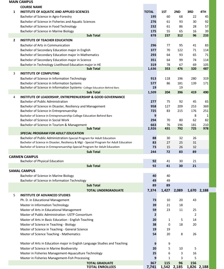 Number of Enrollees by Institute as of August 27, 2025