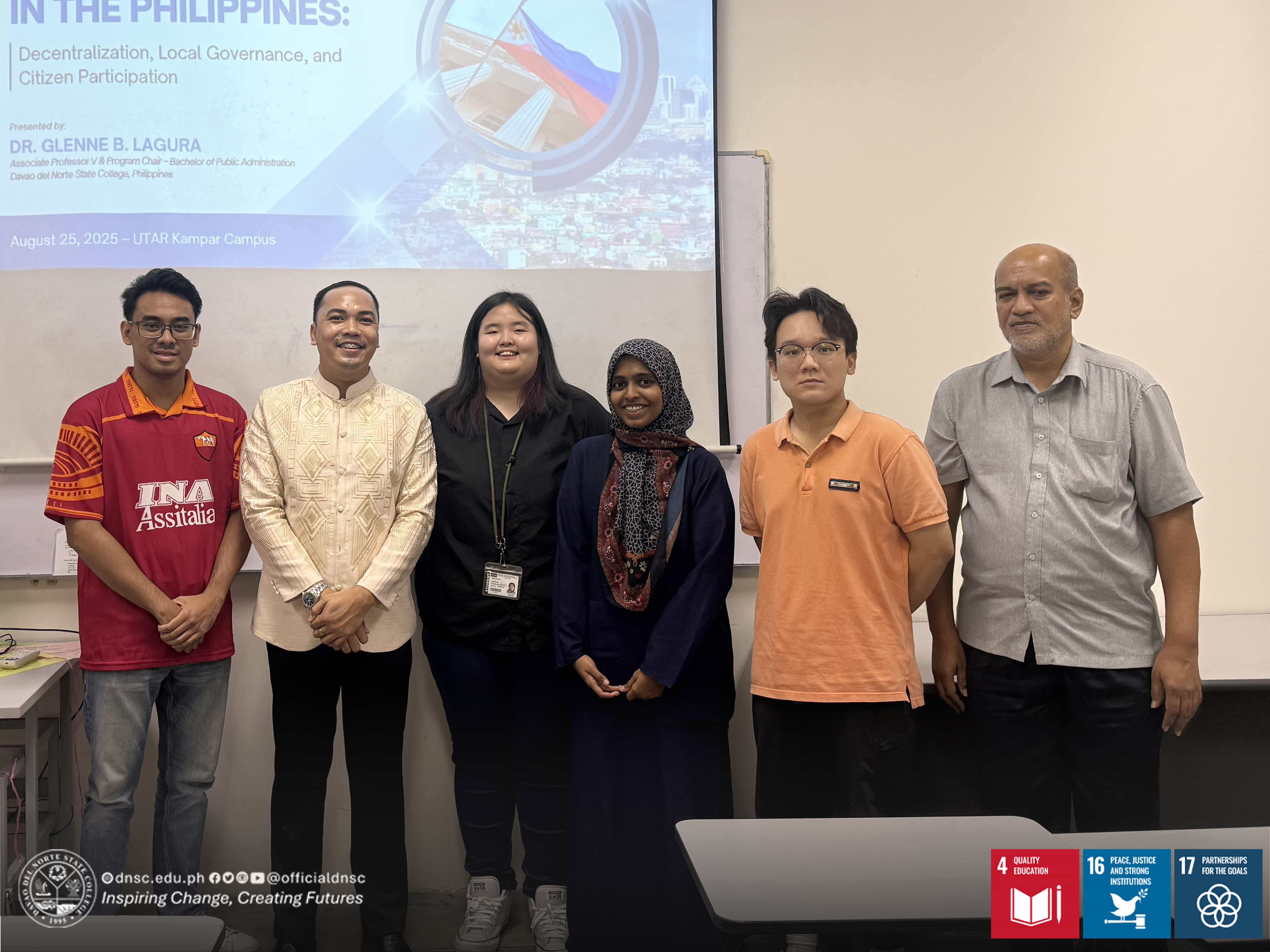 PANABO CITY – Davao del Norte State College (DNSC) faculty member, Dr. Glenne B. Lagura, served as resource speaker in the Youth in Governance: Empowering Future Public Servants through Participatory Leadership and Global Citizenship Seminar, held on August 26, 2025 at the Universiti Tunku Abdul Rahman (UTAR) Kampar Campus, Malaysia. Dr. Lagura’s visit, which ran […]